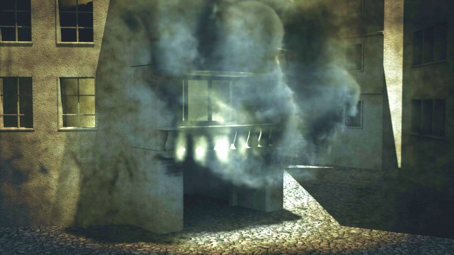 (Příklad užití kouře při znázornění hořícího domu)