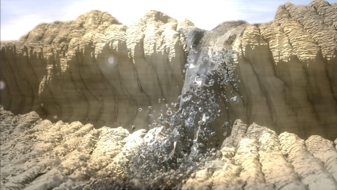 Je až neuvěřitelné, jak může tato částicová simulace kapalin oživit vaší scénu. Třeba takový potůček tekoucí vaším vysněným pokojem, nebo jakkoliv jinak. Jako většina funkcí i tato podléhá zákonům gravitace, kterou můžete v průběhu animace různě měnit a vytvářet tak zajímavé efekty. Důležité je, že lze dosáhnout realistických simulací a výpočty netrvají ani moc dlouho.