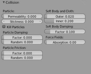 Kolizní funkce je potřebná pro částicové, pružné a látkové simulace. Bez ní by totiž částice na objekt vůbec nereagovaly. Nejjednodušší příklad je podlaha, na kterou padá kamení. Každý kámen se jinak odráží a chová, proto nám Blender umožňuje nastavovat různé parametry jako tření, tlumení energie, přilnavost atd. Možností je jako vždy mnoho a vhodným nastavením vznikají velmi realistické simulace a přitom je jejich výpočet rychlý.