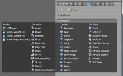 Modifers se nachází vpravo v panelu nástrojů. Je to sada nástrojů umožňující různě pracovat s tělesem jak v editačním tak v objektovém modu. V novějších verzích jsou pod touto kolonkou přidány taky další cesty k jiným různým funkcím, jako třeba simulace. Důležité je udržovat pořadí při používání více efektů na jeden objekt, protože při jiném řazení vzniká jiný výsledek. Například pokud zadáte prvně Array a pak teprve zjemnění, bude zjemněn pouze originální objekt. Podívejme se tedy, které funkce z modifikátorů jsou nejpoužívanější.