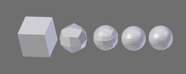 (Příklad užití zjemnění na krychli, která se přidáváním bodů zakulatí)