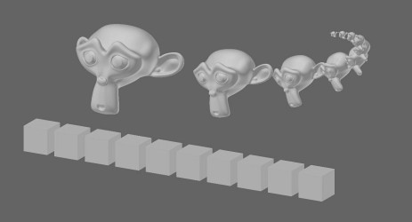 Samotné particles mají taky několik druhů emitování. Částečky, body se mohou tedy různě chovat. Například k sobě mohou být mírně přitahovány a tvořit tak kapalinu, vypadávat z tělesa a chovat se podle fyzikálních zákonů nebo mohou mít jednoduchou umělou inteligenci, která se používá třeba k tvoření neuspořádaných armád pohybujících se po poli (podobný způsob byl například použit při natáčení všech tří dílů Pána prstenů, kdy se takto vytvářely útočící armády). Particles systém je hojně užíván a Blender nabízí jeho hojné propojování s jinými funkcemi, čímž vytváří velice dobrý nástroj pro práci s téměř nevyčerpatelnými možnostmi.