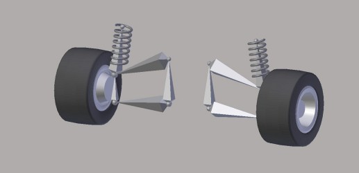 (Příklad jednoduchého užití kostí pro animaci odpružení kol auta)